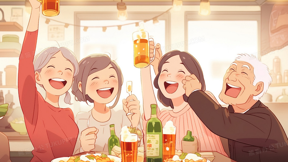 本作品内容为亲朋好友聚会喝酒干杯插画, 格式为 jpg, 大小3 MB, 图片尺寸为2912 x 1632, 源文件无水印, 欢迎使用熊猫办公。 如认为平台内容涉嫌侵权,可通过邮件:tousu@tukuppt.com提出书面通知,我们将及时处理。