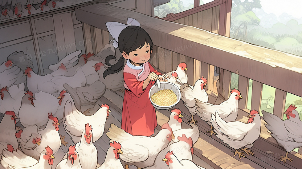 本作品内容为鸡场里饲养土鸡的小女孩插画, 格式为 jpg, 大小3 MB, 图片尺寸为2912 x 1632, 源文件无水印, 欢迎使用熊猫办公。 如认为平台内容涉嫌侵权,可通过邮件:tousu@tukuppt.com提出书面通知,我们将及时处理。