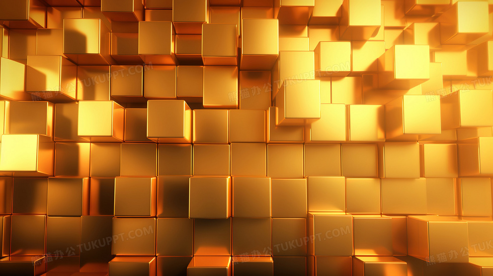 本作品内容为黄金立体几何方形方块背景, 格式为 jpg, 大小2 MB, 图片尺寸为2912 x 1632, 源文件无水印, 欢迎使用熊猫办公。 如认为平台内容涉嫌侵权,可通过邮件:tousu@tukuppt.com提出书面通知,我们将及时处理。
