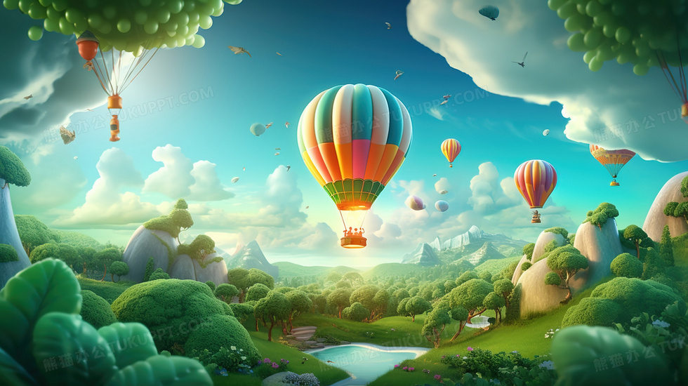 本作品内容为绿色树林上飞翔的热气球风景插画, 格式为 jpg, 大小3 MB, 图片尺寸为2912 x 1632, 源文件无水印, 欢迎使用熊猫办公。 如认为平台内容涉嫌侵权,可通过邮件:tousu@tukuppt.com提出书面通知,我们将及时处理。