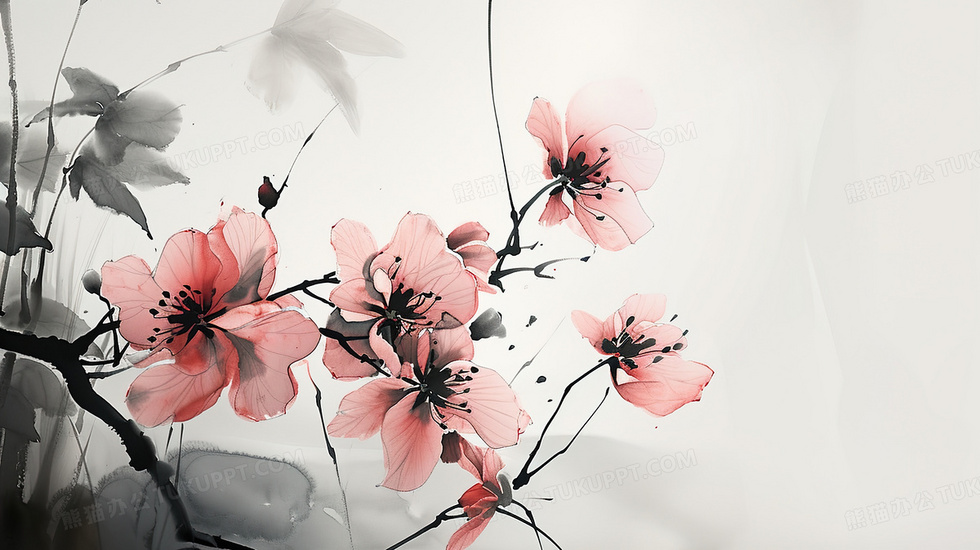 本作品内容为中国风红色花朵水墨插画, 格式为 jpg, 大小2 MB, 图片尺寸为2912 x 1632, 源文件无水印, 欢迎使用熊猫办公。 如认为平台内容涉嫌侵权,可通过邮件:tousu@tukuppt.com提出书面通知,我们将及时处理。