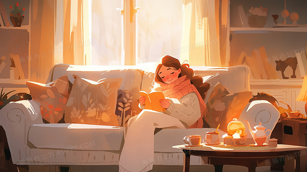 本作品内容为冬日卧室里女孩的休闲时光插画, 格式为 jpg, 大小2 MB, 图片尺寸为2912 x 1632, 源文件无水印, 欢迎使用熊猫办公。 如认为平台内容涉嫌侵权,可通过邮件:tousu@tukuppt.com提出书面通知,我们将及时处理。
