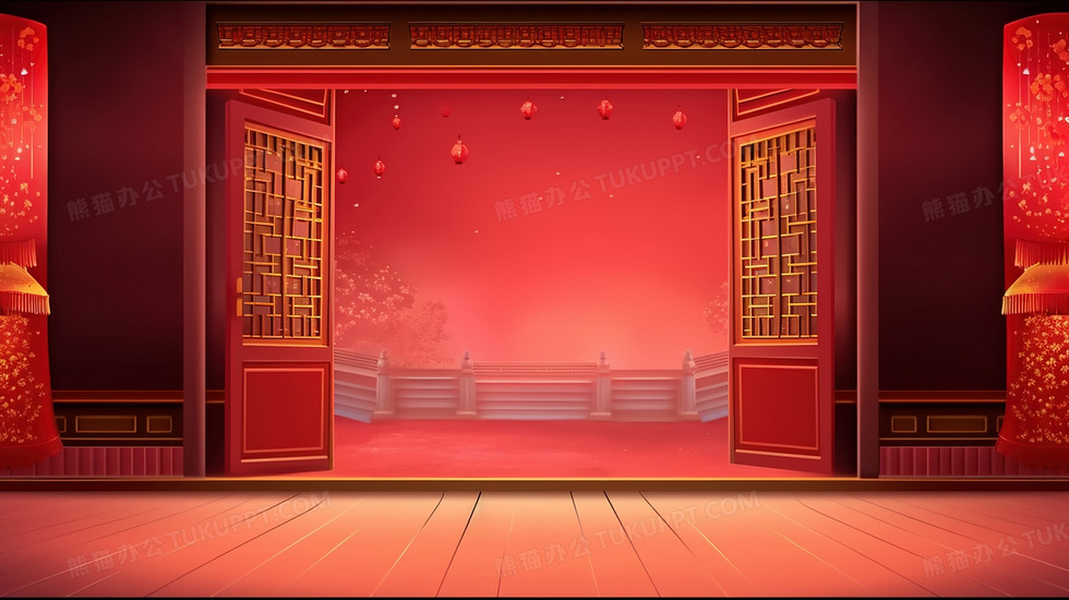 本作品内容为中国风红色古典舞台背景插画, 格式为 jpg, 大小2 MB, 图片尺寸为2912 x 1632, 源文件无水印, 欢迎使用熊猫办公。 如认为平台内容涉嫌侵权,可通过邮件:tousu@tukuppt.com提出书面通知,我们将及时处理。