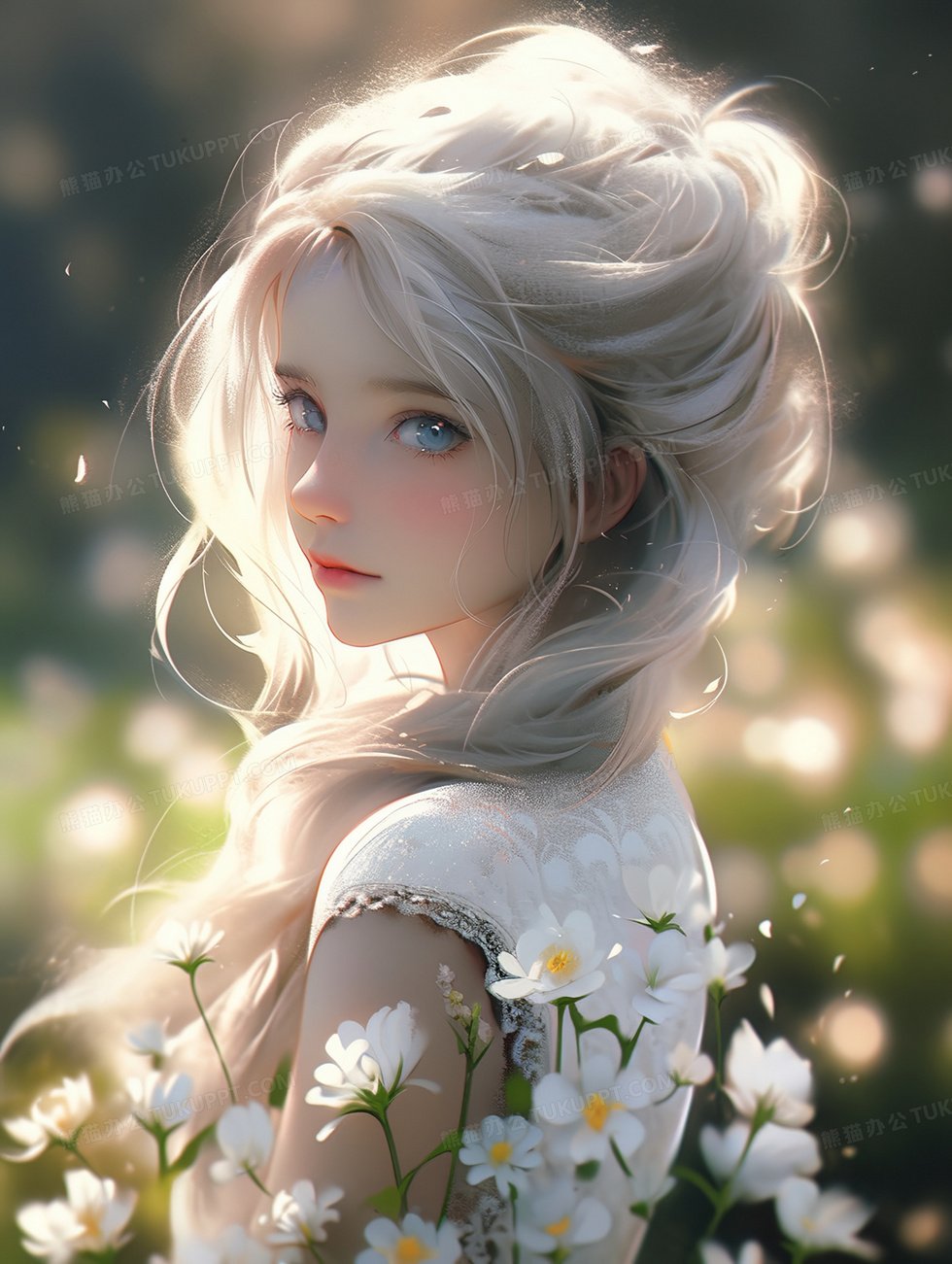 本作品内容为花朵中的银发女孩唯美插画, 格式为 jpg, 大小2 MB, 图片尺寸为1856 x 2464, 源文件无水印, 欢迎使用熊猫办公。 如认为平台内容涉嫌侵权,可通过邮件:tousu@tukuppt.com提出书面通知,我们将及时处理。