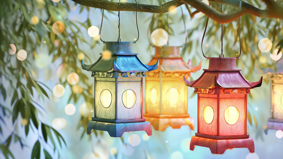 本作品内容为庭院中挂着的七彩灯笼插画, 格式为 jpg, 大小3 MB, 图片尺寸为2912 x 1632, 源文件无水印, 欢迎使用熊猫办公。 如认为平台内容涉嫌侵权,可通过邮件:tousu@tukuppt.com提出书面通知,我们将及时处理。