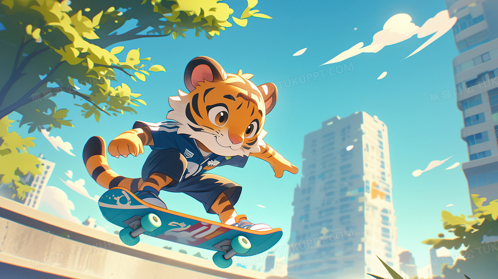 本作品内容为可爱老虎玩滑板插画, 格式为 jpg, 大小3 MB, 图片尺寸为2912 x 1632, 源文件无水印, 欢迎使用熊猫办公。 如认为平台内容涉嫌侵权,可通过邮件:tousu@tukuppt.com提出书面通知,我们将及时处理。