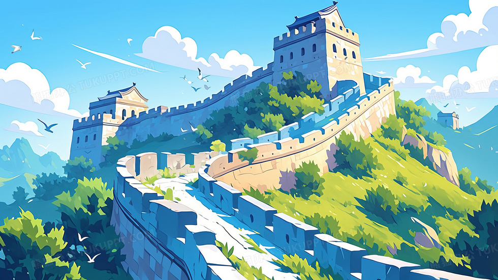 首页 > 插画 > 科技艺术 > 卡通漫画 > 蓝天白云卡通国庆节长城插画