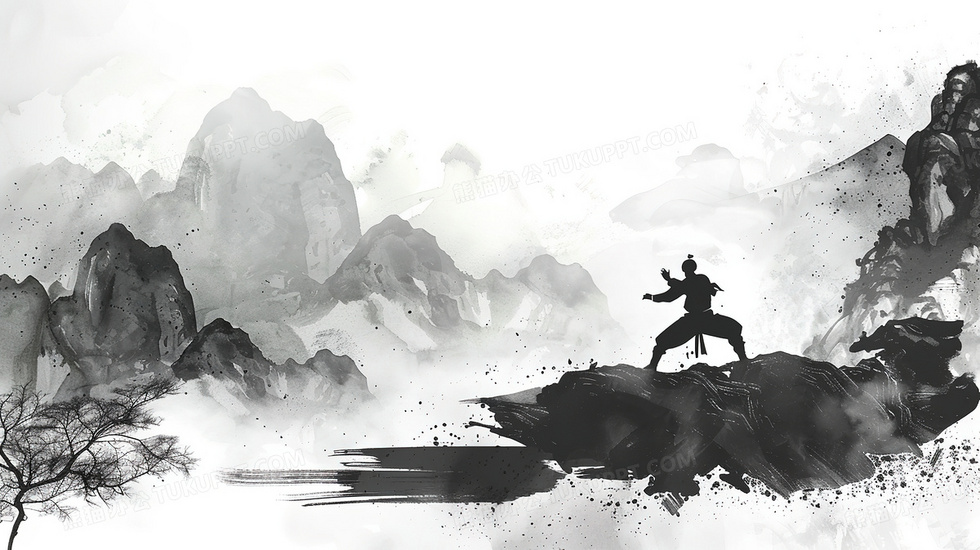 本作品内容为中华武术水墨背景, 格式为 jpg, 大小3 MB, 图片尺寸为2912 x 1632, 作品中背景图片无需修改, 源文件无水印,可以直接使用, 欢迎使用熊猫办公。 如认为平台内容涉嫌侵权,可通过邮件:tousu@tukuppt.com提出书面通知,我们将及时处理。