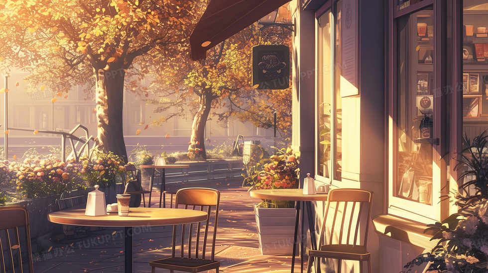 本作品内容为秋季街角咖啡厅风景插画, 格式为 jpg, 大小4 MB, 图片尺寸为2912 x 1632, 源文件无水印, 欢迎使用熊猫办公。 如认为平台内容涉嫌侵权,可通过邮件:tousu@tukuppt.com提出书面通知,我们将及时处理。
