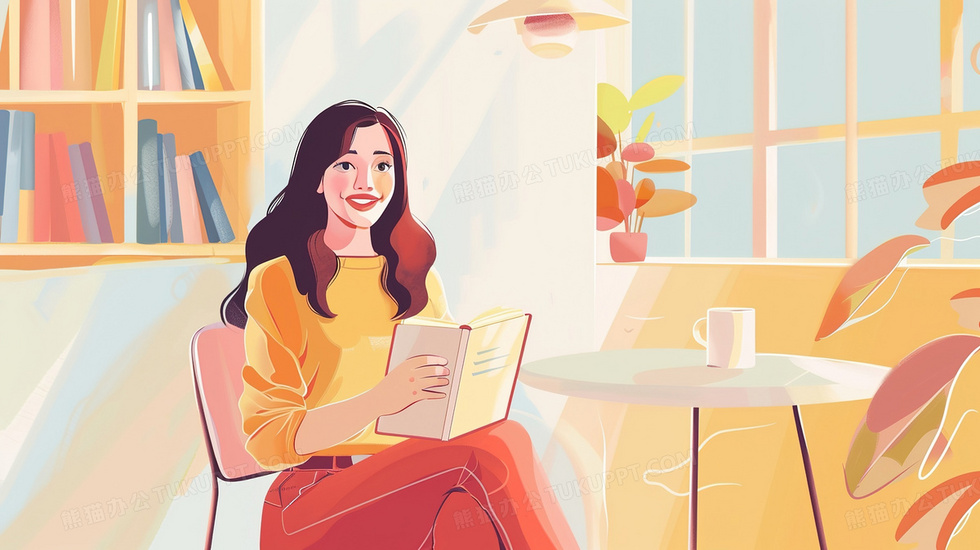 本作品内容为喝下午茶看书的商务女白领插画, 格式为 jpg, 大小2 MB, 图片尺寸为2912 x 1632, 源文件无水印, 欢迎使用熊猫办公。 如认为平台内容涉嫌侵权,可通过邮件:tousu@tukuppt.com提出书面通知,我们将及时处理。