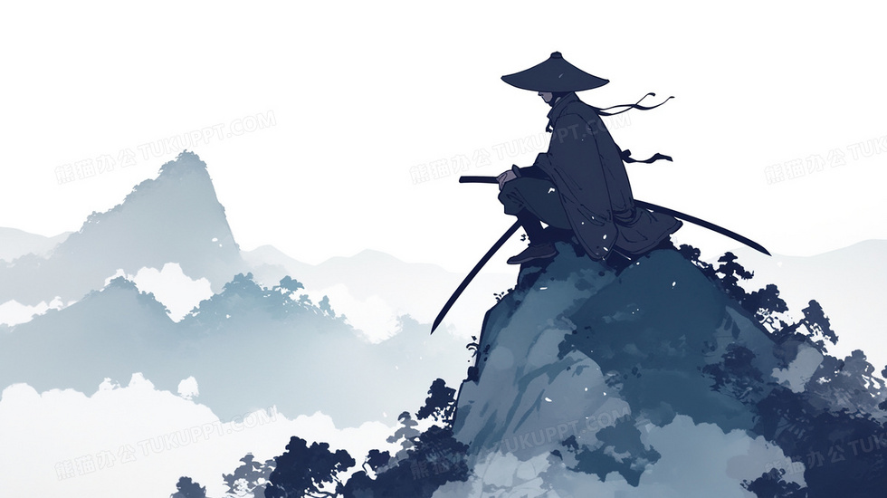 本作品内容为水墨山顶手拿剑的黑色侠客背景, 格式为 jpg, 大小2 MB, 图片尺寸为2912 x 1632, 作品中背景图片无需修改, 源文件无水印,可以直接使用, 欢迎使用熊猫办公。 如认为平台内容涉嫌侵权,可通过邮件:tousu@tukuppt.com提出书面通知,我们将及时处理。