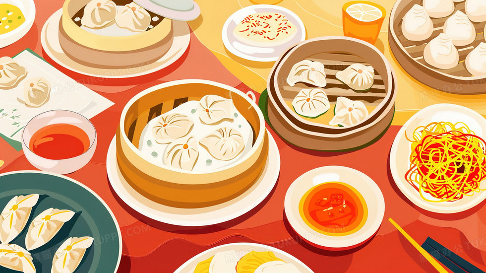 本作品内容为桌面上的美食早餐包子插画, 格式为 jpg, 大小3 MB, 图片尺寸为2912 x 1632, 源文件无水印, 欢迎使用熊猫办公。 如认为平台内容涉嫌侵权,可通过邮件:tousu@tukuppt.com提出书面通知,我们将及时处理。