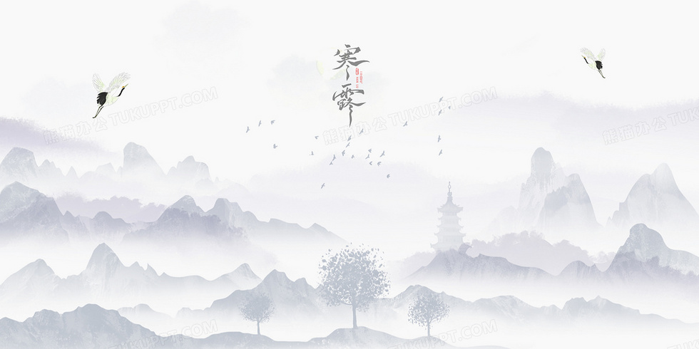 本作品内容为水墨山水中国风寒露传统节气背景, 格式为 psd, 大小39 MB, 图片尺寸为4724 x 2362, 作品中背景图片无需修改, 源文件无水印,可以直接使用, 欢迎使用熊猫办公。 如认为平台内容涉嫌侵权,可通过邮件:tousu@tukuppt.com提出书面通知,我们将及时处理。