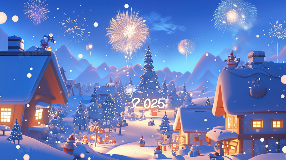 本作品内容为2025新年跨年夜燃放烟花插画, 格式为 jpg, 大小3 MB, 图片尺寸为2912 x 1632, 源文件无水印, 欢迎使用熊猫办公。 如认为平台内容涉嫌侵权,可通过邮件:tousu@tukuppt.com提出书面通知,我们将及时处理。