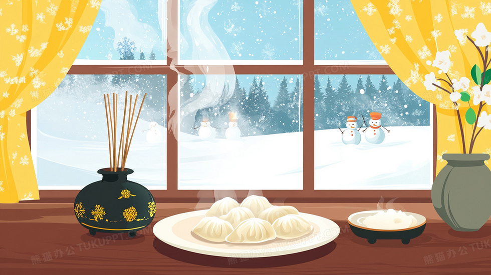 本作品内容为饺子窗前冬天小雪节气卡通插画, 格式为 jpg, 大小2 MB, 图片尺寸为2912 x 1632, 源文件无水印, 欢迎使用熊猫办公。 如认为平台内容涉嫌侵权,可通过邮件:tousu@tukuppt.com提出书面通知,我们将及时处理。