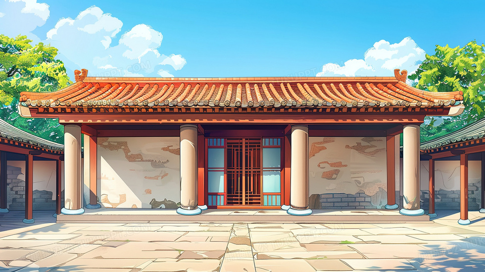 本作品内容为蓝天白云唯美中式古建筑插画, 格式为 jpg, 大小3 MB, 图片尺寸为2912 x 1632, 源文件无水印, 欢迎使用熊猫办公。 如认为平台内容涉嫌侵权,可通过邮件:tousu@tukuppt.com提出书面通知,我们将及时处理。