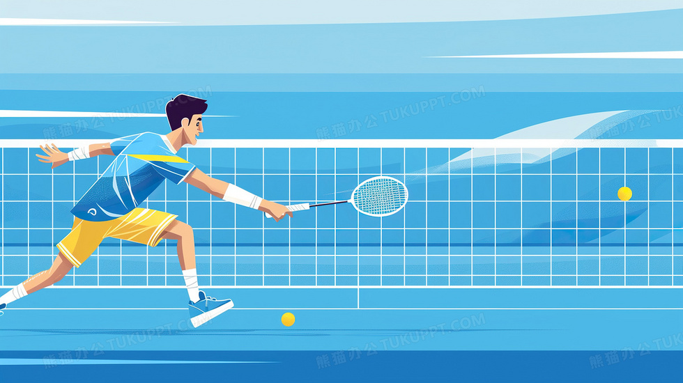 本作品内容为蓝色卡通网球羽毛球背景, 格式为 jpg, 大小2 MB, 图片尺寸为2912 x 1632, 作品中背景图片无需修改, 源文件无水印,可以直接使用, 欢迎使用熊猫办公。 如认为平台内容涉嫌侵权,可通过邮件:tousu@tukuppt.com提出书面通知,我们将及时处理。