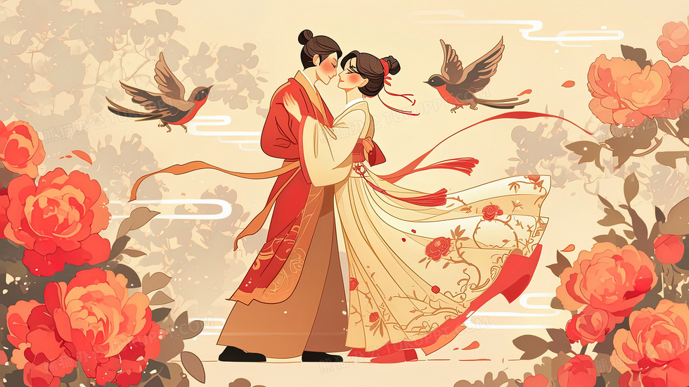 首页 > 插画 > 科技艺术 > 中国风 > 七夕牛郎织女相会牡丹花插画