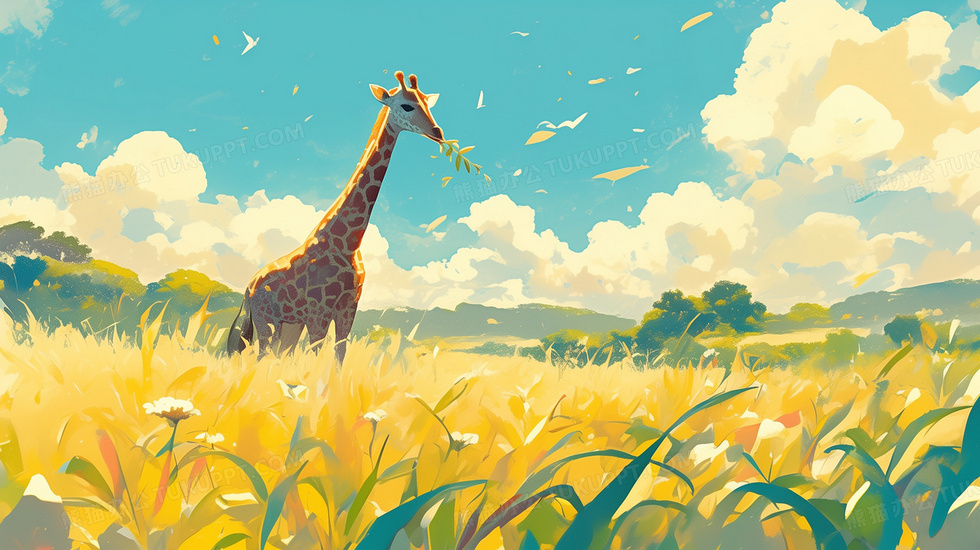 本作品内容为可爱的长颈鹿站在非洲草原上吃树叶插画, 格式为 jpg, 大小6 MB, 图片尺寸为2912 x 1632, 源文件无水印, 欢迎使用熊猫办公。 如认为平台内容涉嫌侵权,可通过邮件:tousu@tukuppt.com提出书面通知,我们将及时处理。