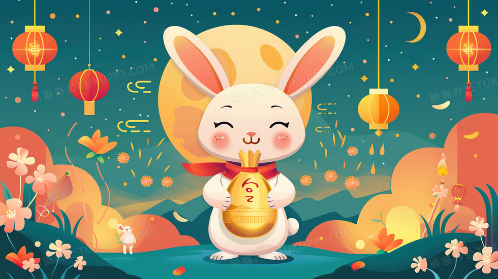本作品内容为中国风中秋节玉兔送祝福庆中秋插画, 格式为 jpg, 大小2 MB, 图片尺寸为2912 x 1632, 源文件无水印, 欢迎使用熊猫办公。 如认为平台内容涉嫌侵权,可通过邮件:tousu@tukuppt.com提出书面通知,我们将及时处理。
