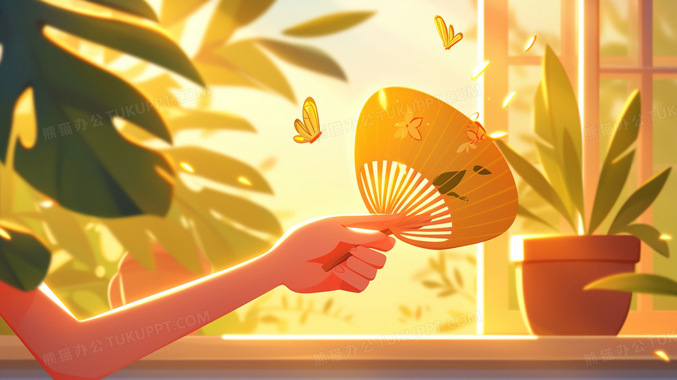 本作品内容为炎热夏季手拿扇子扇风插画, 格式为 jpg, 大小2 MB, 图片尺寸为2912 x 1632, 源文件无水印, 欢迎使用熊猫办公。 如认为平台内容涉嫌侵权,可通过邮件:tousu@tukuppt.com提出书面通知,我们将及时处理。