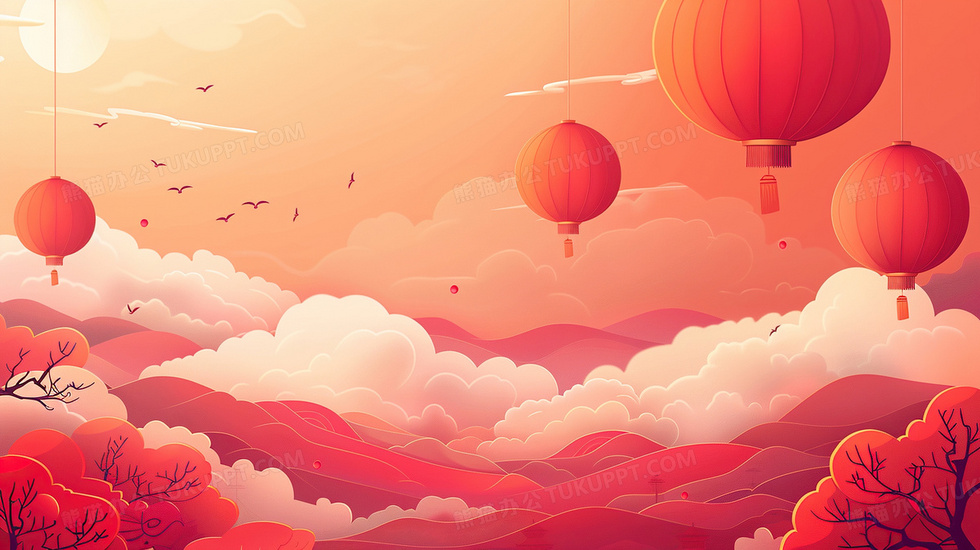 本作品内容为红色喜庆中国风灯笼祥云合成边框背景, 格式为 jpg, 大小3 MB, 图片尺寸为2912 x 1632, 作品中背景图片无需修改, 源文件无水印,可以直接使用, 欢迎使用熊猫办公。 如认为平台内容涉嫌侵权,可通过邮件:tousu@tukuppt.com提出书面通知,我们将及时处理。