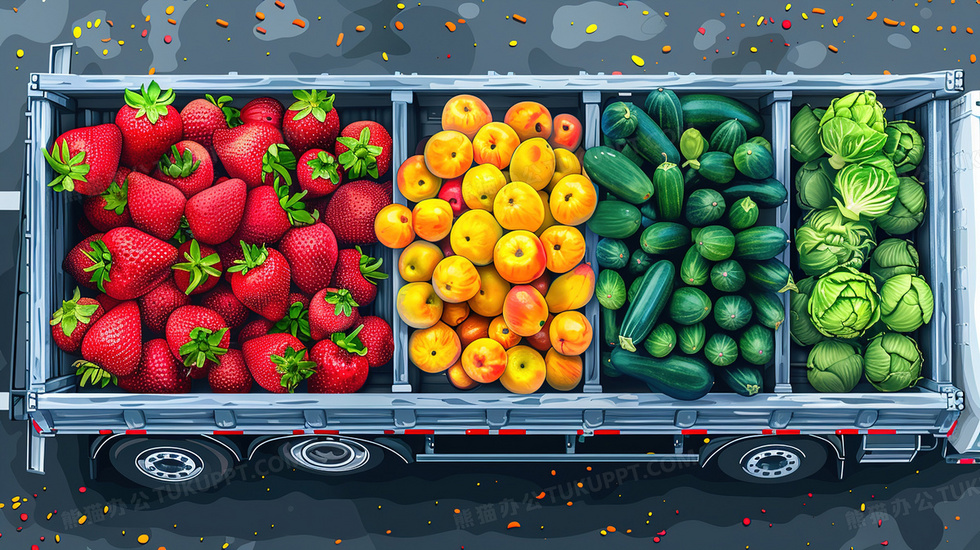 本作品内容为丰收日满载蔬菜水果的车厢插画, 格式为 jpg, 大小3 MB, 图片尺寸为2912 x 1632, 源文件无水印, 欢迎使用熊猫办公。 如认为平台内容涉嫌侵权,可通过邮件:tousu@tukuppt.com提出书面通知,我们将及时处理。