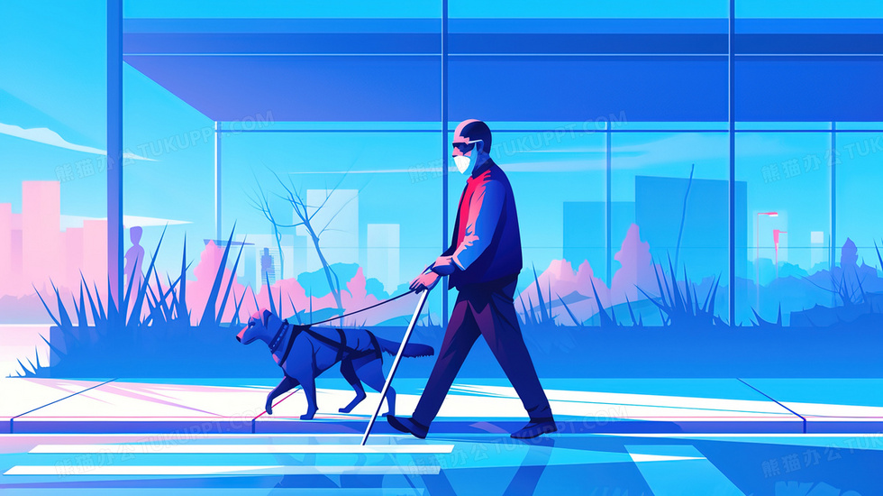 本作品内容为路上的导盲犬与男性盲人插画, 格式为 jpg, 大小3 MB, 图片尺寸为2912 x 1632, 源文件无水印, 欢迎使用熊猫办公。 如认为平台内容涉嫌侵权,可通过邮件:tousu@tukuppt.com提出书面通知,我们将及时处理。