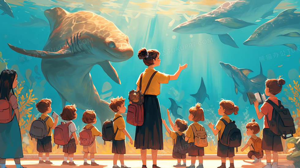 本作品内容为老师带小朋友海洋馆看动物插画, 格式为 jpg, 大小3 MB, 图片尺寸为2912 x 1632, 源文件无水印, 欢迎使用熊猫办公。 如认为平台内容涉嫌侵权,可通过邮件:tousu@tukuppt.com提出书面通知,我们将及时处理。