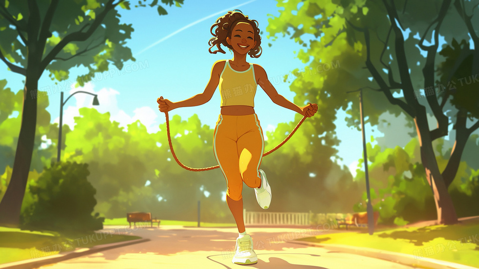 本作品内容为早起公园锻炼运动跳绳的女人插画, 格式为 jpg, 大小2 MB, 图片尺寸为2912 x 1632, 源文件无水印, 欢迎使用熊猫办公。 如认为平台内容涉嫌侵权,可通过邮件:tousu@tukuppt.com提出书面通知,我们将及时处理。