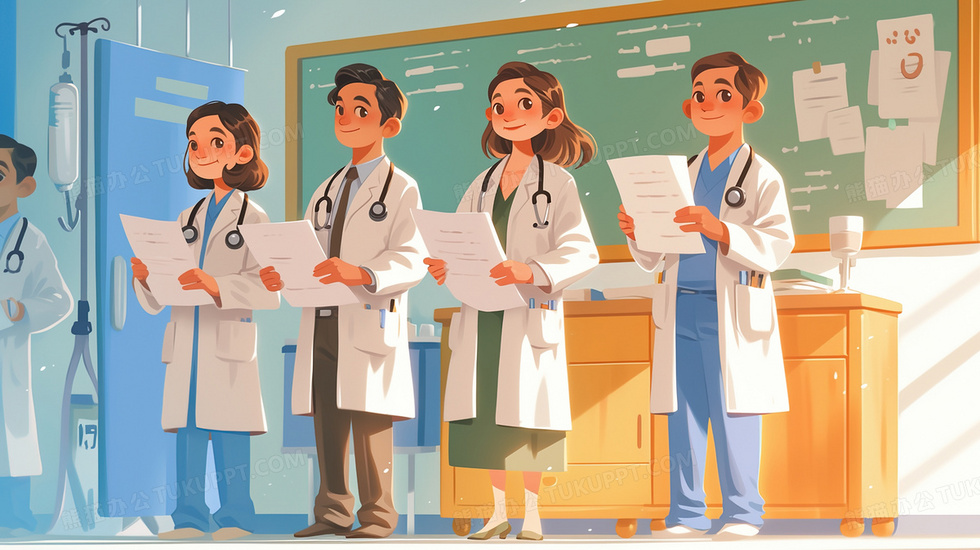 本作品内容为身穿白大褂听诊器的医生团队特写插画, 格式为 jpg, 大小2 MB, 图片尺寸为2912 x 1632, 源文件无水印, 欢迎使用熊猫办公。 如认为平台内容涉嫌侵权,可通过邮件:tousu@tukuppt.com提出书面通知,我们将及时处理。