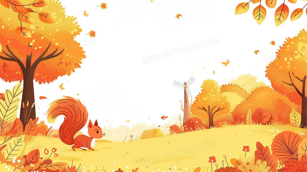 本作品内容为卡通秋天松鼠树林背景, 格式为 jpg, 大小3 MB, 图片尺寸为2912 x 1632, 作品中背景图片无需修改, 源文件无水印,可以直接使用, 欢迎使用熊猫办公。 如认为平台内容涉嫌侵权,可通过邮件:tousu@tukuppt.com提出书面通知,我们将及时处理。