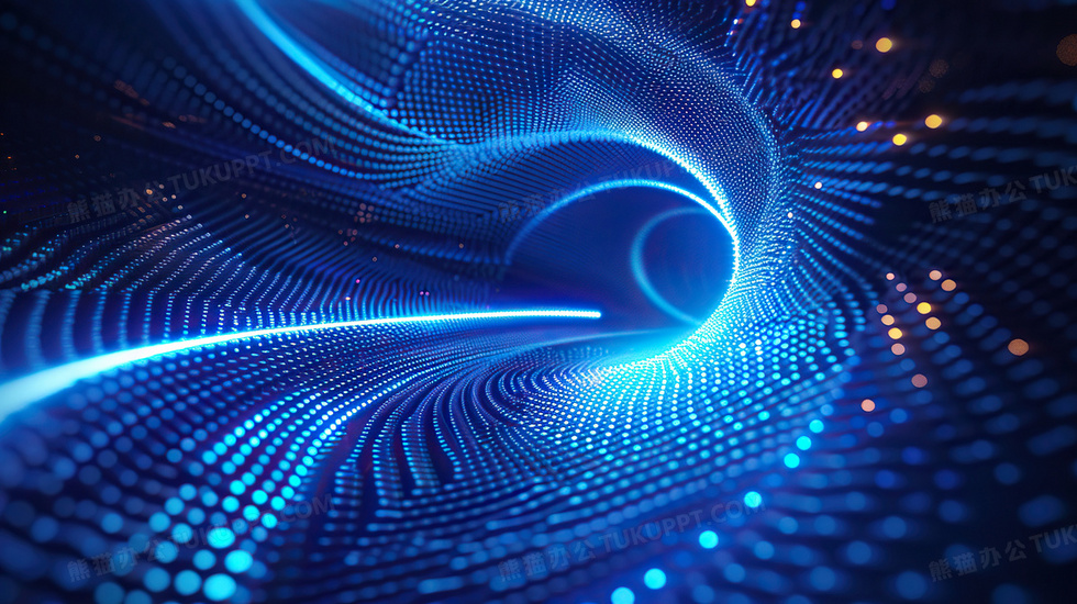 本作品内容为蓝色光点隧道背景, 格式为 jpg, 大小4 MB, 图片尺寸为2912 x 1632, 作品中背景图片无需修改, 源文件无水印,可以直接使用, 欢迎使用熊猫办公。 如认为平台内容涉嫌侵权,可通过邮件:tousu@tukuppt.com提出书面通知,我们将及时处理。