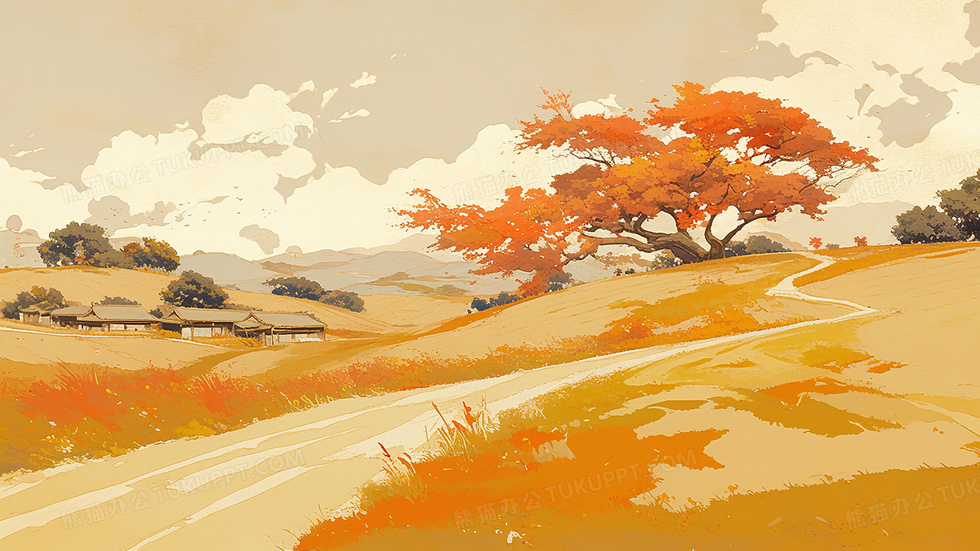 本作品内容为中国风秋天乡村田野风景插画, 格式为 jpg, 大小6 MB, 图片尺寸为2870 x 1614, 源文件无水印, 欢迎使用熊猫办公。 如认为平台内容涉嫌侵权,可通过邮件:tousu@tukuppt.com提出书面通知,我们将及时处理。