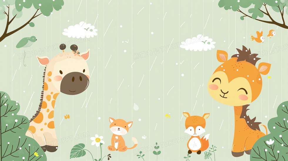本作品内容为卡通小动物长颈鹿可爱边框背景, 格式为 jpg, 大小2 MB, 图片尺寸为2912 x 1632, 作品中背景图片无需修改, 源文件无水印,可以直接使用, 欢迎使用熊猫办公。 如认为平台内容涉嫌侵权,可通过邮件:tousu@tukuppt.com提出书面通知,我们将及时处理。
