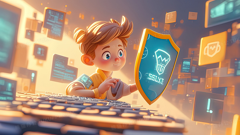 本作品内容为科技网络信息安全防护盾牌男孩插画, 格式为 jpg, 大小2 MB, 图片尺寸为2912 x 1632, 源文件无水印, 欢迎使用熊猫办公。 如认为平台内容涉嫌侵权,可通过邮件:tousu@tukuppt.com提出书面通知,我们将及时处理。