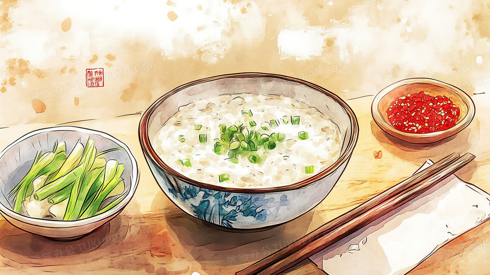 本作品内容为餐桌上的早餐美食白粥插画, 格式为 jpg, 大小4 MB, 图片尺寸为2912 x 1632, 源文件无水印, 欢迎使用熊猫办公。 如认为平台内容涉嫌侵权,可通过邮件:tousu@tukuppt.com提出书面通知,我们将及时处理。