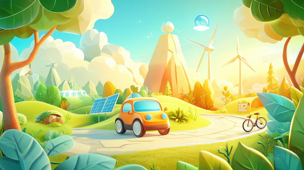 首页 > 插画 > 科技艺术 > 卡通漫画 > 3D汽车电车新能源环保创意插画