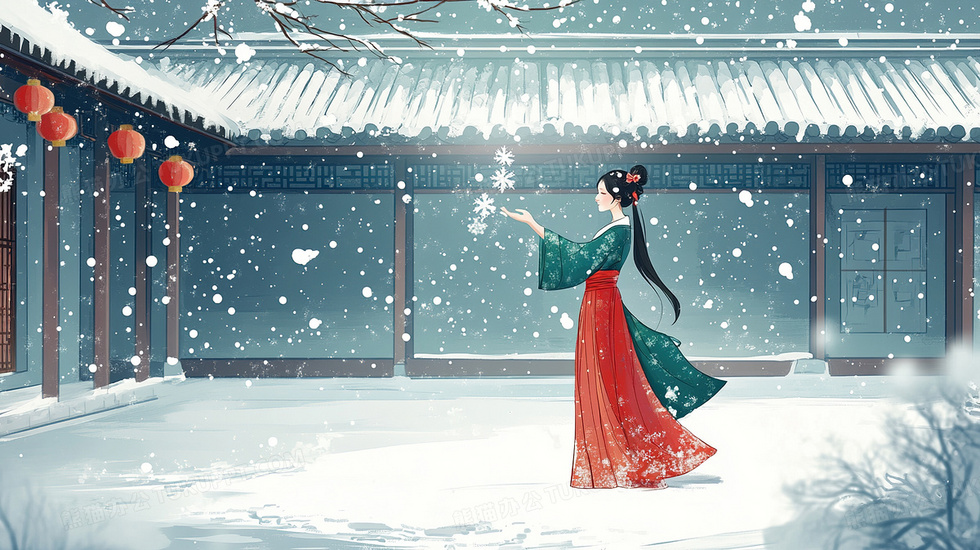 本作品内容为冬季大院汉服女子伸手接雪花插画, 格式为 jpg, 大小3 MB, 图片尺寸为2912 x 1632, 源文件无水印, 欢迎使用熊猫办公。 如认为平台内容涉嫌侵权,可通过邮件:tousu@tukuppt.com提出书面通知,我们将及时处理。