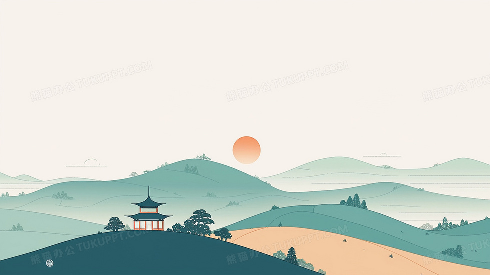 本作品内容为卡通山水日出景色创意背景, 格式为 jpg, 大小2 MB, 图片尺寸为2912 x 1632, 作品中背景图片无需修改, 源文件无水印,可以直接使用, 欢迎使用熊猫办公。 如认为平台内容涉嫌侵权,可通过邮件:tousu@tukuppt.com提出书面通知,我们将及时处理。