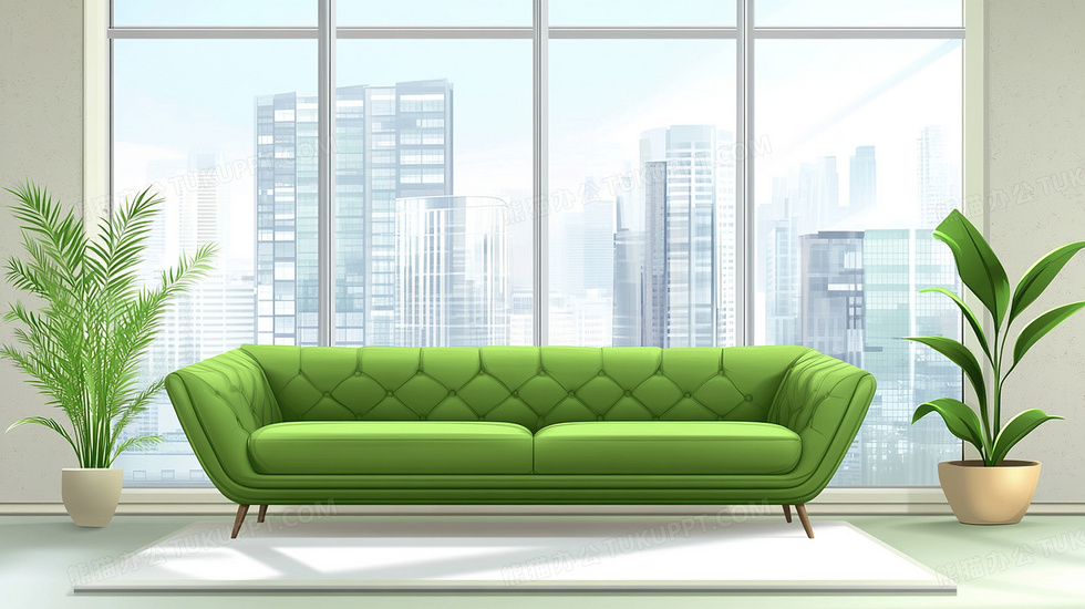 本作品内容为绿色沙发室内装修装潢家具插画, 格式为 jpg, 大小3 MB, 图片尺寸为2912 x 1632, 源文件无水印, 欢迎使用熊猫办公。 如认为平台内容涉嫌侵权,可通过邮件:tousu@tukuppt.com提出书面通知,我们将及时处理。