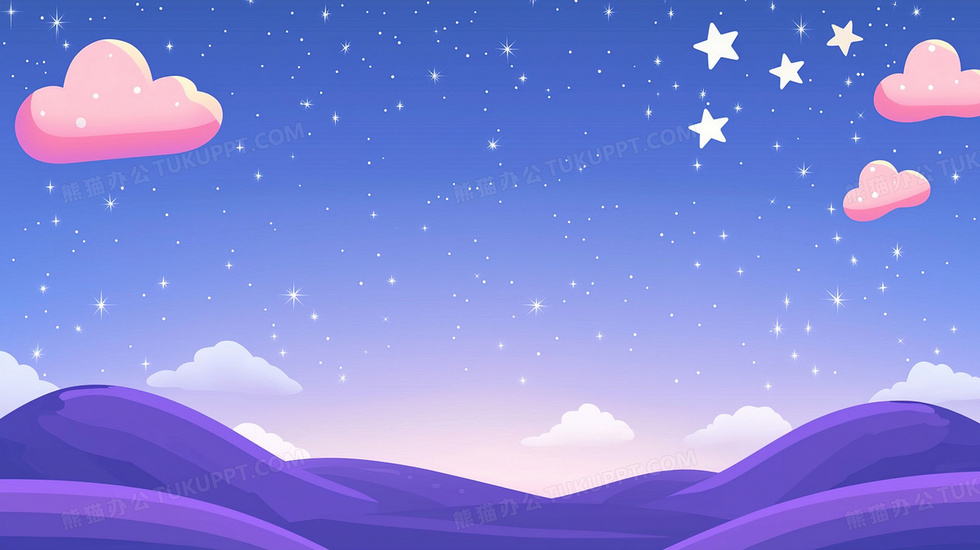 本作品内容为卡通紫色星空山水创意背景, 格式为 jpg, 大小2 MB, 图片尺寸为2912 x 1632, 作品中背景图片无需修改, 源文件无水印,可以直接使用, 欢迎使用熊猫办公。 如认为平台内容涉嫌侵权,可通过邮件:tousu@tukuppt.com提出书面通知,我们将及时处理。