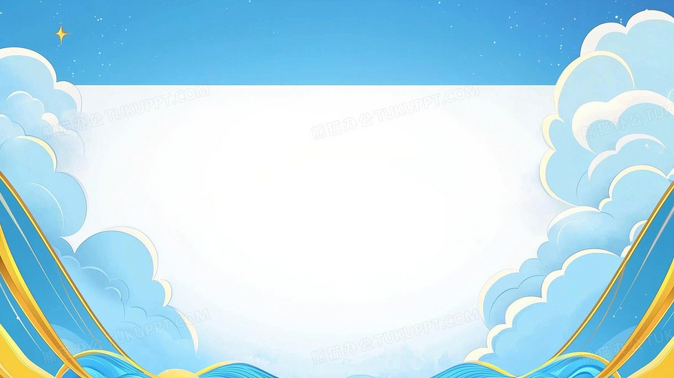 本作品内容为小清新蓝天白云装饰边框背景, 格式为 jpg, 大小2 MB, 图片尺寸为2912 x 1632, 作品中背景图片无需修改, 源文件无水印,可以直接使用, 欢迎使用熊猫办公。 如认为平台内容涉嫌侵权,可通过邮件:tousu@tukuppt.com提出书面通知,我们将及时处理。