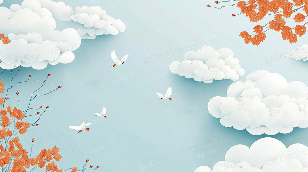 本作品内容为唯美浪漫天空云层飞鸟创意背景, 格式为 jpg, 大小2 MB, 图片尺寸为2912 x 1632, 作品中背景图片无需修改, 源文件无水印,可以直接使用, 欢迎使用熊猫办公。 如认为平台内容涉嫌侵权,可通过邮件:tousu@tukuppt.com提出书面通知,我们将及时处理。