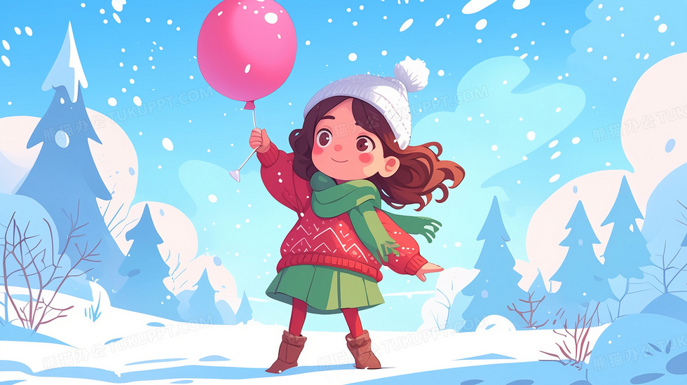 本作品内容为冬季穿厚毛衣围围巾雪地手拿气球女孩插画, 格式为 jpg, 大小2 MB, 图片尺寸为2912 x 1632, 源文件无水印, 欢迎使用熊猫办公。 如认为平台内容涉嫌侵权,可通过邮件:tousu@tukuppt.com提出书面通知,我们将及时处理。