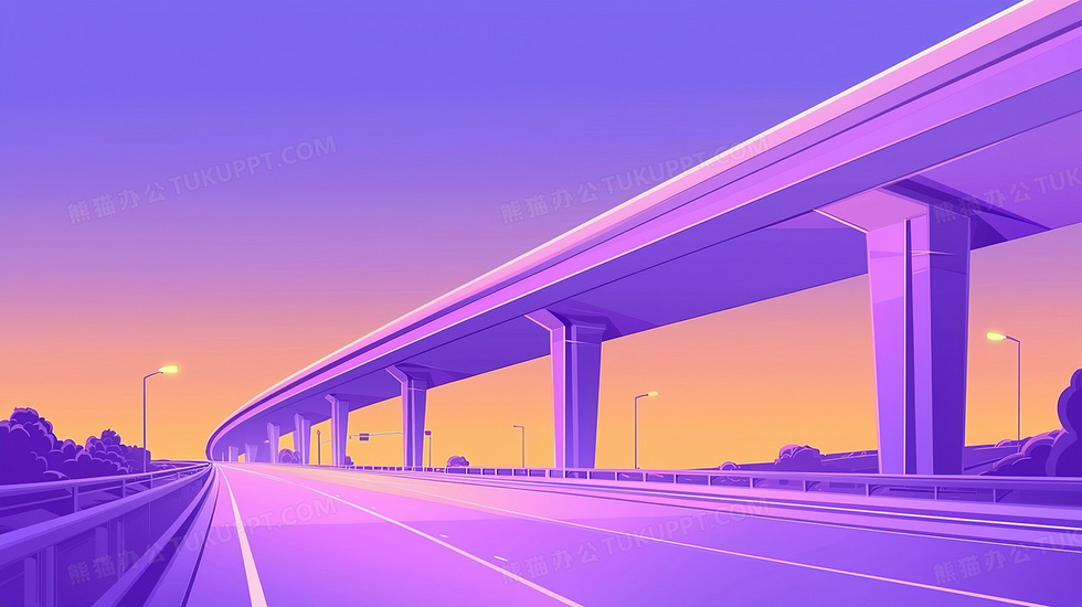 本作品内容为紫色天空下的桥梁道路创意背景, 格式为 jpg, 大小2 MB, 图片尺寸为2912 x 1632, 作品中背景图片无需修改, 源文件无水印,可以直接使用, 欢迎使用熊猫办公。 如认为平台内容涉嫌侵权,可通过邮件:tousu@tukuppt.com提出书面通知,我们将及时处理。