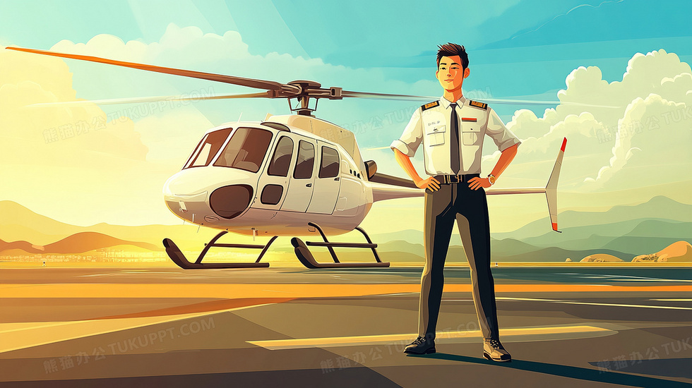 本作品内容为职业飞行员与直升机插画, 格式为 jpg, 大小3 MB, 图片尺寸为2912 x 1632, 源文件无水印, 欢迎使用熊猫办公。 如认为平台内容涉嫌侵权,可通过邮件:tousu@tukuppt.com提出书面通知,我们将及时处理。
