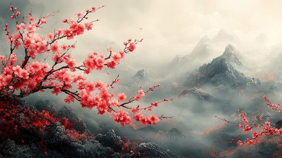本作品内容为中国风国画梅花插画, 格式为 jpg, 大小4 MB, 图片尺寸为2912 x 1632, 源文件无水印, 欢迎使用熊猫办公。 如认为平台内容涉嫌侵权,可通过邮件:tousu@tukuppt.com提出书面通知,我们将及时处理。