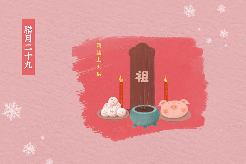 本作品内容为腊月二十九请祖上插画, 格式为 psd, 大小65 MB, 请使用软件PhotoShop(CS6)打开, 源文件无水印, 欢迎使用熊猫办公。 如认为平台内容涉嫌侵权,可通过邮件:tousu@tukuppt.com提出书面通知,我们将及时处理。
