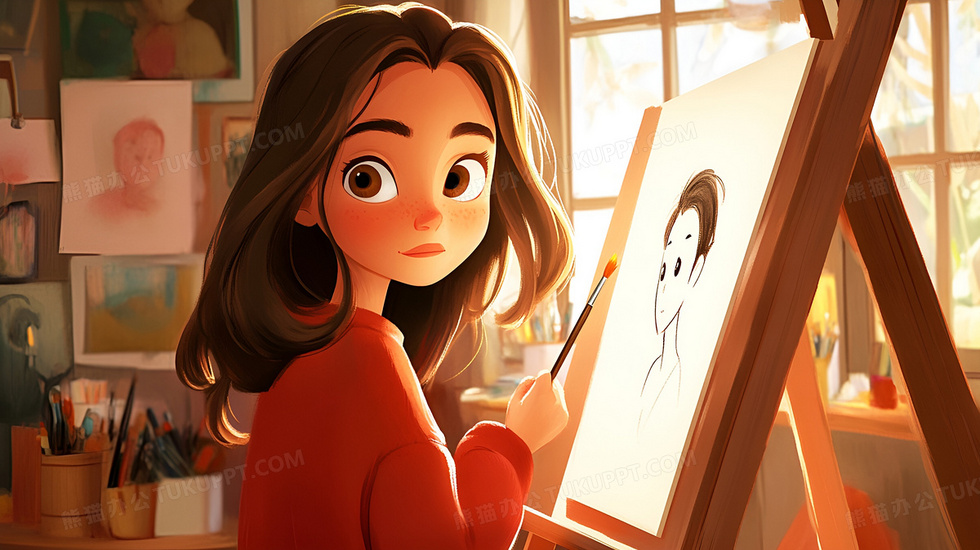 本作品内容为在房间里画画的女孩插画, 格式为 jpg, 大小1 MB, 图片尺寸为2912 x 1632, 源文件无水印, 欢迎使用熊猫办公。 如认为平台内容涉嫌侵权,可通过邮件:tousu@tukuppt.com提出书面通知,我们将及时处理。